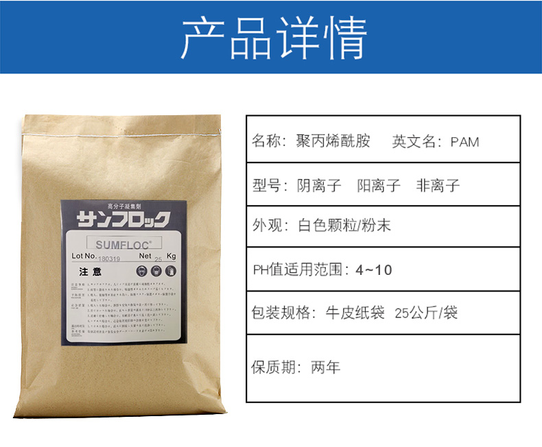 3、調整被處理液的PH值,使陰離子聚丙烯酰胺產品充分發揮其作用,通過實驗選擇適當的PH值和產品用量。